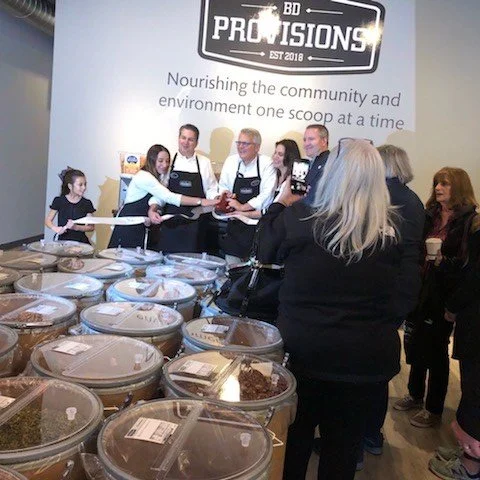 Here is the ribbon cutting of our store in Newtown, CT in November 2018 with the local press and supportive friends, family and neighbors ready to shop at the first BD Provisions!